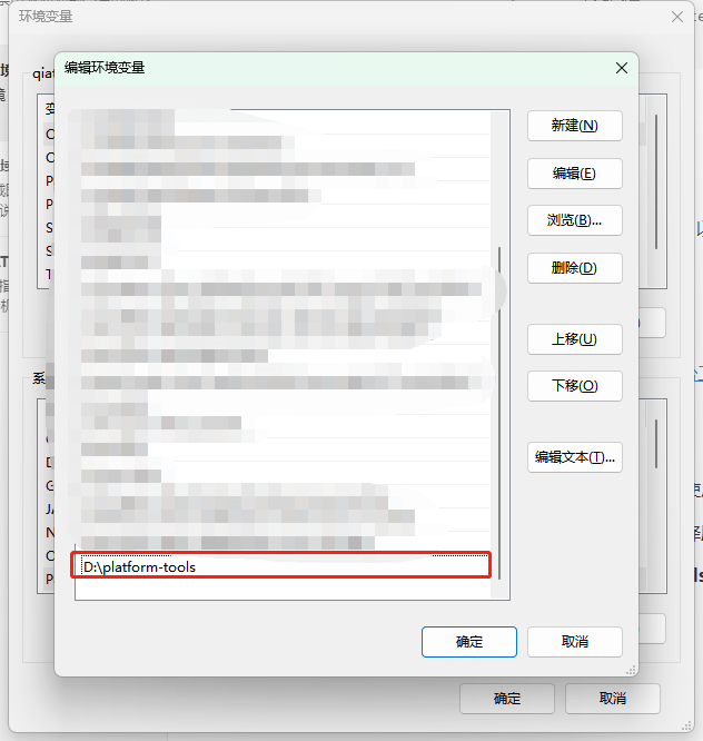 点击新建,添加Platform-Tools路径,如下图。